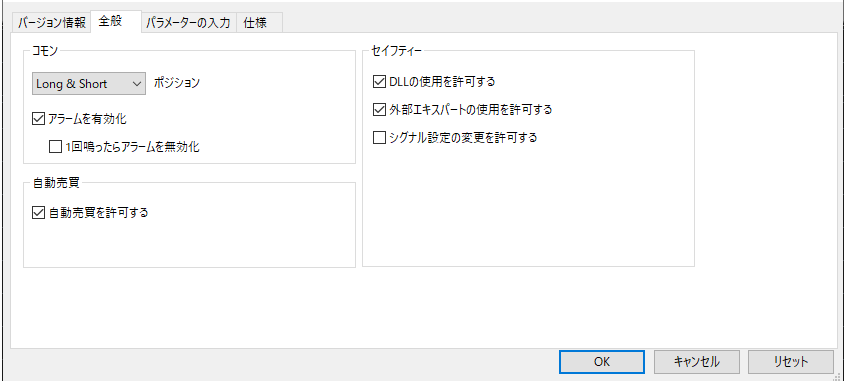 ・自動売買に許可するにチェックを入れてください