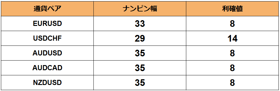 こちらの数値は推奨設定が通貨ペアによって異なります。