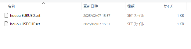 プリセットファイルは「EURUSD」「USDCHF」それぞれありますのでお間違いないようお願いします。