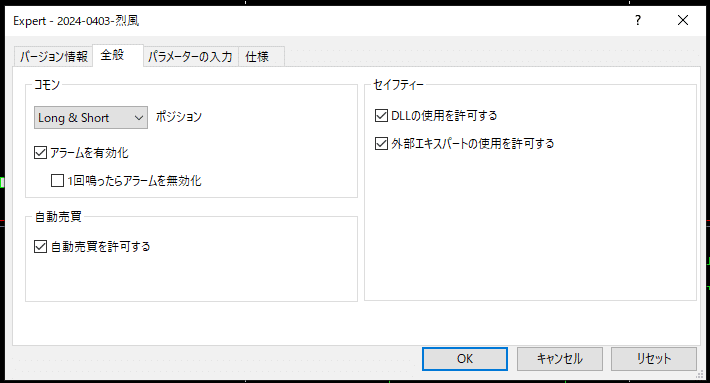 ・自動売買に許可するにチェックを入れてください