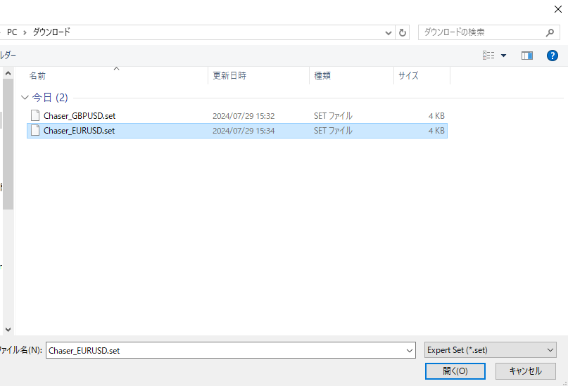 セットファイルが保存してある場所を選択し、セットファイルをダブルクリックしてください。